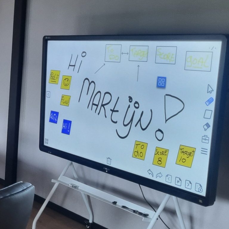 Vertoon op deze grote touchscreen (85inch) je presentatie of gebruik hem als hulpmiddel voor je meetings. Direct aan te sluiten op je laptop met de aanwezige lange usb kabel.