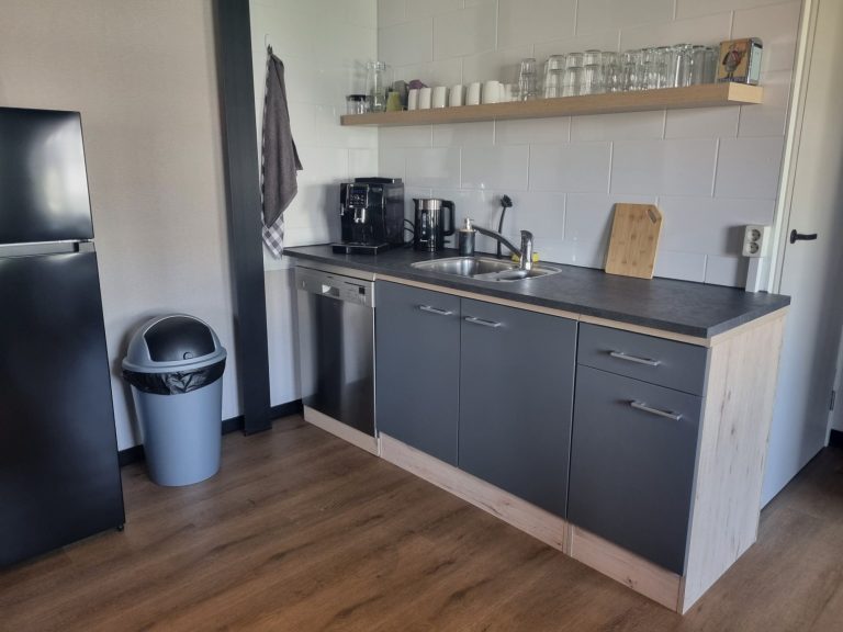 Lekker keukentje met alle gemakken om je eigen koffie te zetten, thee te maken of iets uit de koelkast te halen. Na de lunch kan alles zo de vaatwasser in.